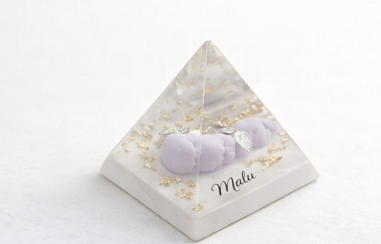 A Pirâmide Afetiva em resina é uma peça delicada e simbólica, feita para eternizar os laços mais profundos da vida. Com 5,5 x 5,5 cm, ela pode incorporar elementos únicos como pêlos de animais ou cinzas de cremação — transformando lembranças em arte.